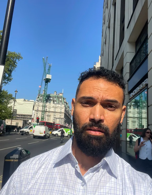 At 12:30, I met a colleague for coffee in East London before a work meeting. It went well. I got back home by 4:30 PM β took the Central and Piccadilly lines. It was so hot today, and I was in a blue suit.
